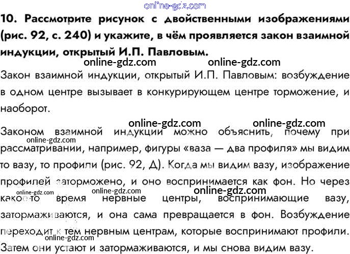 Готовые домашние задания по Биологии за 8 класс Учебник Драгомилов, Маш Алгоритм успеха 2022 - Подведём итоги Глава 10. Поведение и психика 10