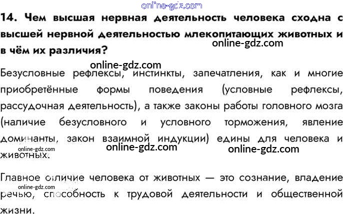 Готовые домашние задания по Биологии за 8 класс Учебник Драгомилов, Маш Алгоритм успеха 2022 - Подведём итоги Глава 10. Поведение и психика 14