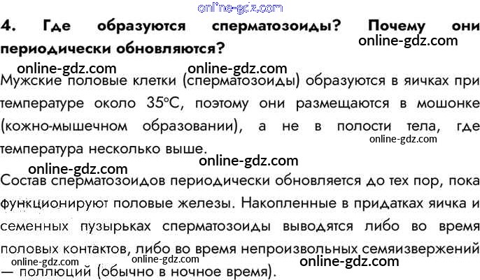Готовые домашние задания по Биологии за 8 класс Учебник Драгомилов, Маш Алгоритм успеха 2022 - Вопросы §58. Половая система человека 4