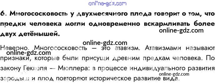 Готовые домашние задания по Биологии за 8 класс Учебник Драгомилов, Маш Алгоритм успеха 2022 - Отметьте верные утверждения Глава 11. Индивидуальное развитие организма 6