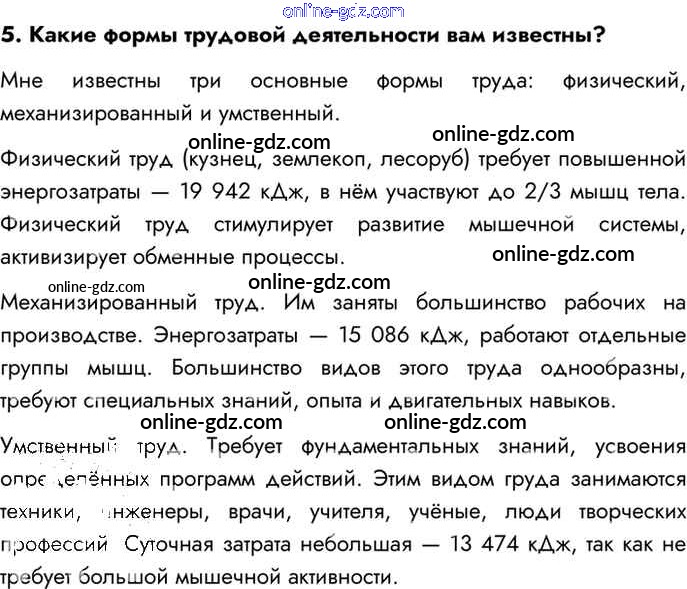 Готовые домашние задания по Биологии за 8 класс Учебник Драгомилов, Маш Алгоритм успеха 2022 - Вопросы §61. Здоровье и образ жизни. 5