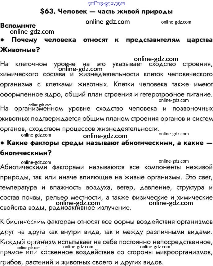 §63. Человек — часть живой природы