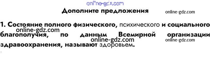 Готовые домашние задания по Биологии за 8 класс Учебник Драгомилов, Маш Алгоритм успеха 2022 - Дополните предложения Глава 12. Здоровье. Охрана здоровья человека 1