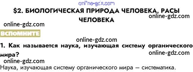 Готовые домашние задания по Биологии за 8 класс Учебник Пасечник, Каменский Линия жизни 2016 - Вспомните §2. Биологическая природа человека. Расы человека 1