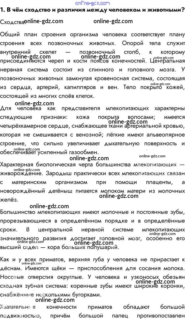 Готовые домашние задания по Биологии за 8 класс Учебник Пасечник, Каменский Линия жизни 2016 - Вопросы §2. Биологическая природа человека. Расы человека 1