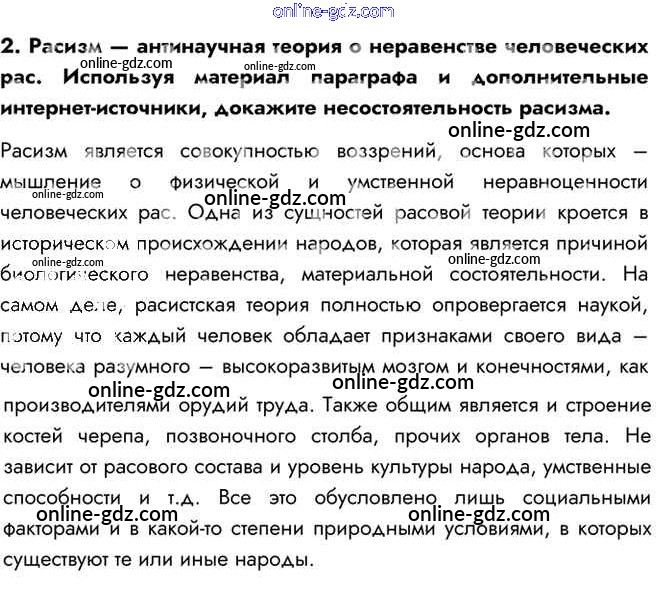 Готовые домашние задания по Биологии за 8 класс Учебник Пасечник, Каменский Линия жизни 2016 - Задания §2. Биологическая природа человека. Расы человека 2