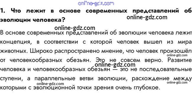 Готовые домашние задания по Биологии за 8 класс Учебник Пасечник, Каменский Линия жизни 2016 - Вопросы §3. Происхождение и эволюция человека. Антропогенез 1