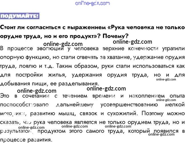 Готовые домашние задания по Биологии за 8 класс Учебник Пасечник, Каменский Линия жизни 2016 - Подумайте §3. Происхождение и эволюция человека. Антропогенез 1