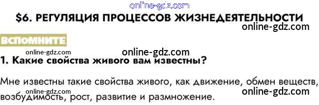 Готовые домашние задания по Биологии за 8 класс Учебник Пасечник, Каменский Линия жизни 2016 - Вспомните §6. Регуляция процессов жизнедеятельности 1