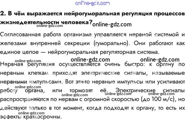 Готовые домашние задания по Биологии за 8 класс Учебник Пасечник, Каменский Линия жизни 2016 - Вопросы §6. Регуляция процессов жизнедеятельности 2