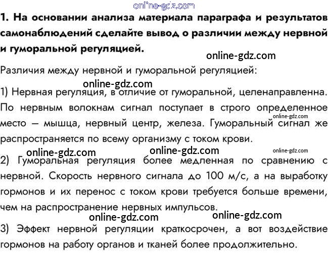 Готовые домашние задания по Биологии за 8 класс Учебник Пасечник, Каменский Линия жизни 2016 - Задания §6. Регуляция процессов жизнедеятельности 1