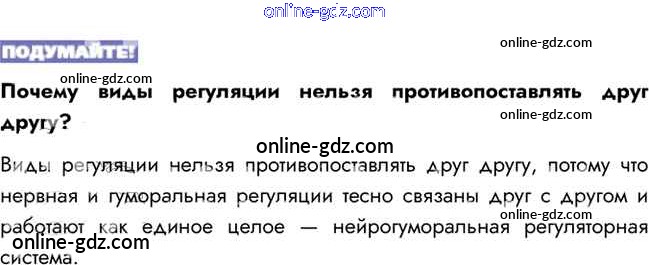 Готовые домашние задания по Биологии за 8 класс Учебник Пасечник, Каменский Линия жизни 2016 - Подумайте §6. Регуляция процессов жизнедеятельности 1