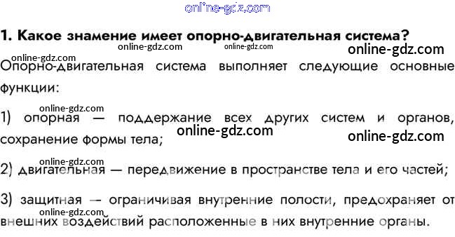 Готовые домашние задания по Биологии за 8 класс Учебник Пасечник, Каменский Линия жизни 2016 - Вопросы §7. Опорно-двигательная система. Состав, строение и рост костей 1