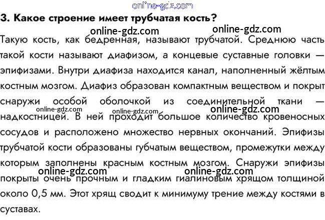 Готовые домашние задания по Биологии за 8 класс Учебник Пасечник, Каменский Линия жизни 2016 - Вопросы §7. Опорно-двигательная система. Состав, строение и рост костей 3