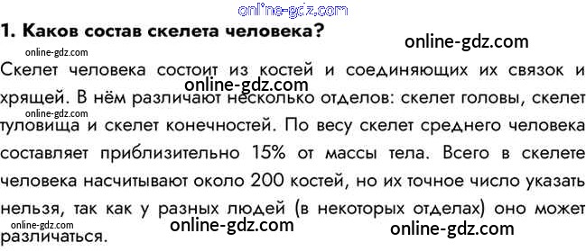 Готовые домашние задания по Биологии за 8 класс Учебник Пасечник, Каменский Линия жизни 2016 - Вопросы §8. Скелет человека. Соединение костей. Скелет головы 1