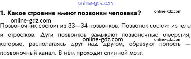 Готовые домашние задания по Биологии за 8 класс Учебник Пасечник, Каменский Линия жизни 2016 - Вопросы §9. Скелет туловища. Скелет конечностей и их поясов 1
