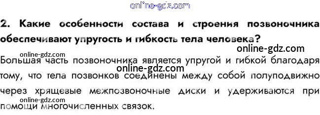 Готовые домашние задания по Биологии за 8 класс Учебник Пасечник, Каменский Линия жизни 2016 - Вопросы §9. Скелет туловища. Скелет конечностей и их поясов 2