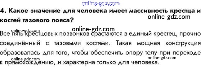Готовые домашние задания по Биологии за 8 класс Учебник Пасечник, Каменский Линия жизни 2016 - Вопросы §9. Скелет туловища. Скелет конечностей и их поясов 4