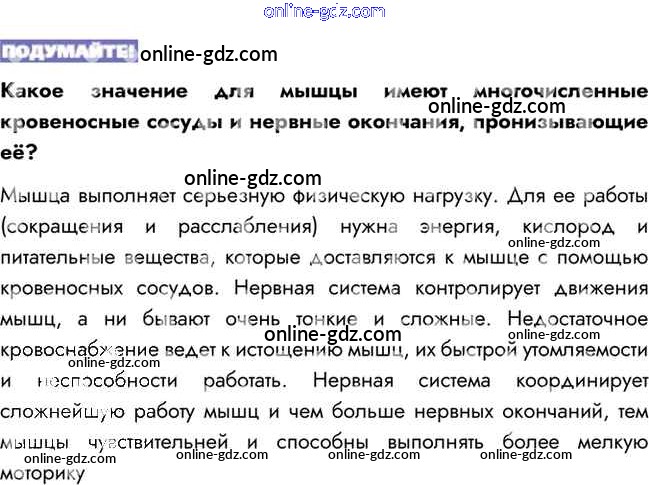 Готовые домашние задания по Биологии за 8 класс Учебник Пасечник, Каменский Линия жизни 2016 - Подумайте §10. Строение и функции скелетных мышц 1