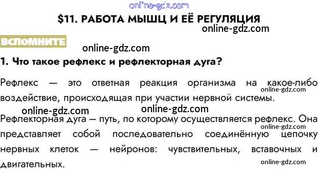 Готовые домашние задания по Биологии за 8 класс Учебник Пасечник, Каменский Линия жизни 2016 - Вспомните §11. Работа мышц и её регуляция 1