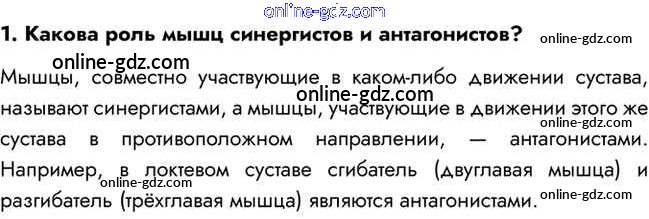 Готовые домашние задания по Биологии за 8 класс Учебник Пасечник, Каменский Линия жизни 2016 - Вопросы §11. Работа мышц и её регуляция 1