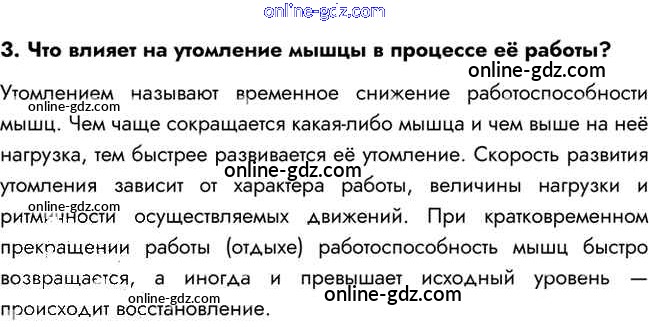 Готовые домашние задания по Биологии за 8 класс Учебник Пасечник, Каменский Линия жизни 2016 - Вопросы §11. Работа мышц и её регуляция 3