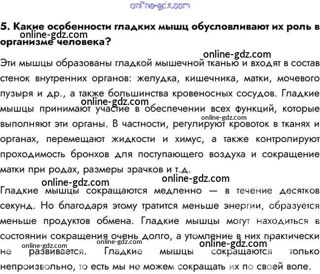 Готовые домашние задания по Биологии за 8 класс Учебник Пасечник, Каменский Линия жизни 2016 - Вопросы §11. Работа мышц и её регуляция 5