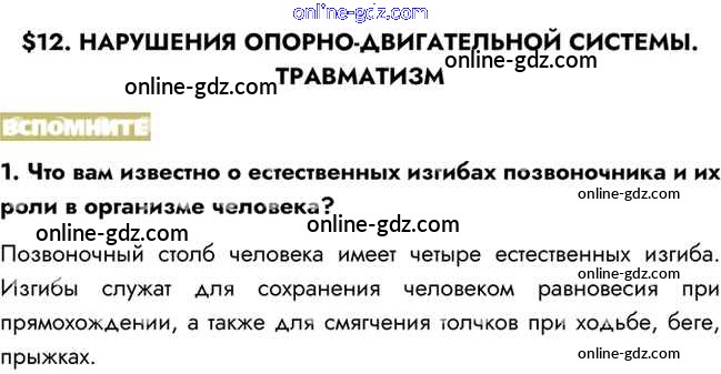 Готовые домашние задания по Биологии за 8 класс Учебник Пасечник, Каменский Линия жизни 2016 - Вспомните §12. Нарушения опорно-двигательной системы. Травматизм 1