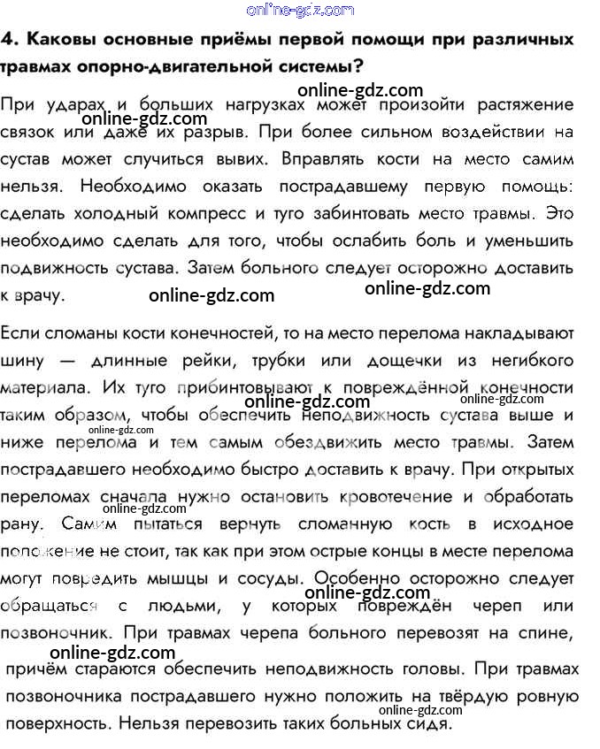 Готовые домашние задания по Биологии за 8 класс Учебник Пасечник, Каменский Линия жизни 2016 - Вопросы §12. Нарушения опорно-двигательной системы. Травматизм 4