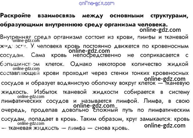 Готовые домашние задания по Биологии за 8 класс Учебник Пасечник, Каменский Линия жизни 2016 - Задания §13. Состав внутренней среды организма и её функции 1