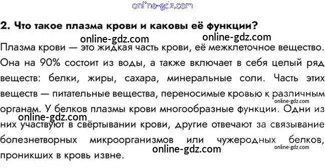Готовые домашние задания по Биологии за 8 класс Учебник Пасечник, Каменский Линия жизни 2016 - Вопросы §14. Состав крови. Постоянство внутренней среды 2