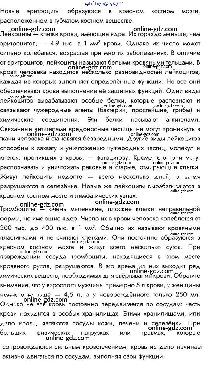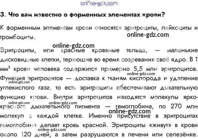 Готовые домашние задания по Биологии за 8 класс Учебник Пасечник, Каменский Линия жизни 2016 - Вопросы §14. Состав крови. Постоянство внутренней среды 3