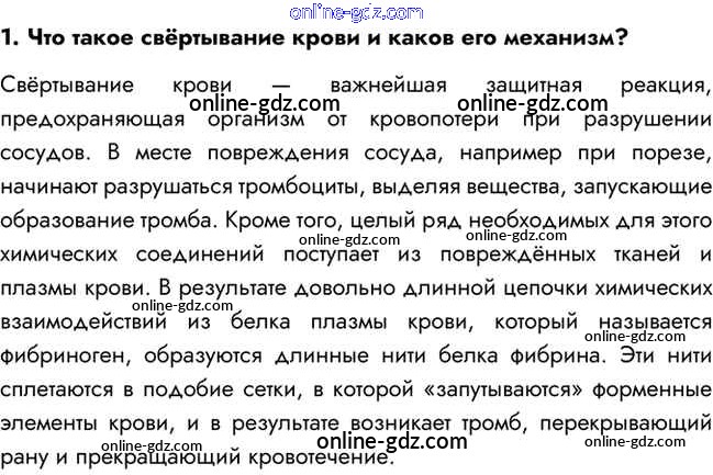 Готовые домашние задания по Биологии за 8 класс Учебник Пасечник, Каменский Линия жизни 2016 - Вопросы §15. Свёртывание крови. Переливание крови. Группы крови 1