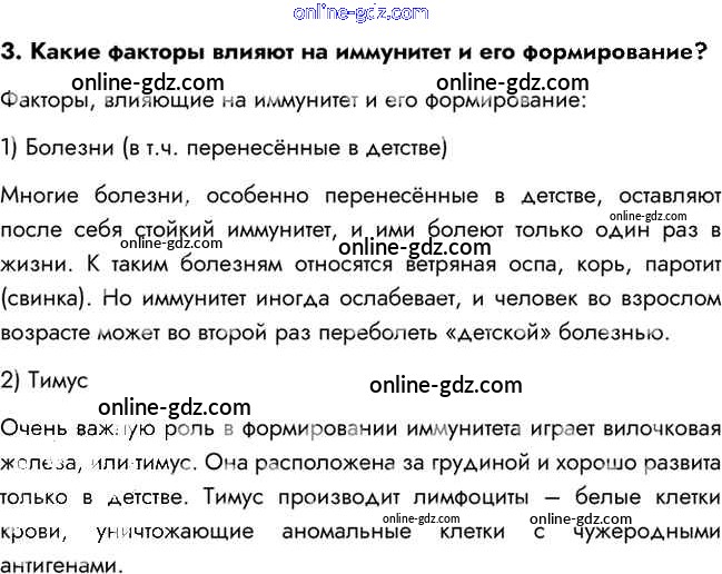 Готовые домашние задания по Биологии за 8 класс Учебник Пасечник, Каменский Линия жизни 2016 - Вопросы §16. Иммунитет. Нарушения иммунной системы человека. Вакцинация 3