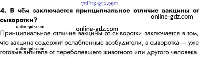 Готовые домашние задания по Биологии за 8 класс Учебник Пасечник, Каменский Линия жизни 2016 - Вопросы §16. Иммунитет. Нарушения иммунной системы человека. Вакцинация 4