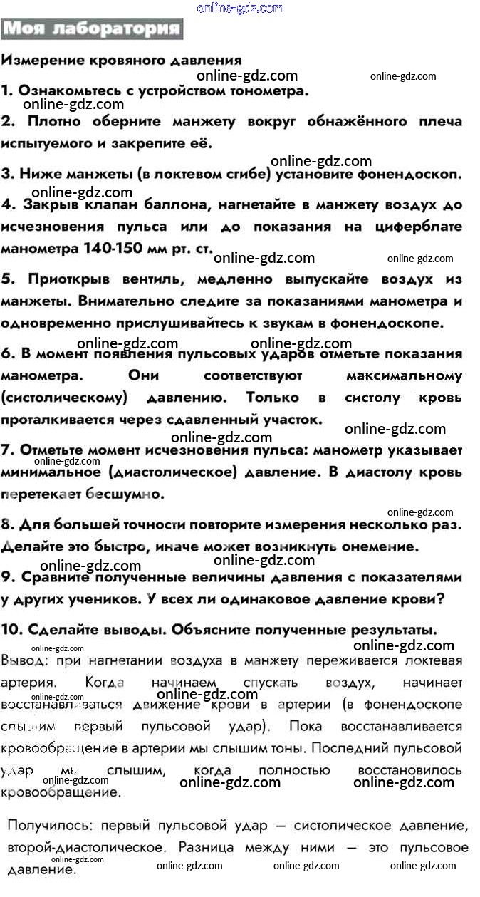 Готовые домашние задания по Биологии за 8 класс Учебник Пасечник, Каменский Линия жизни 2016 - Моя лаборатория §18. Сосудистая система. Лимфообращение 1