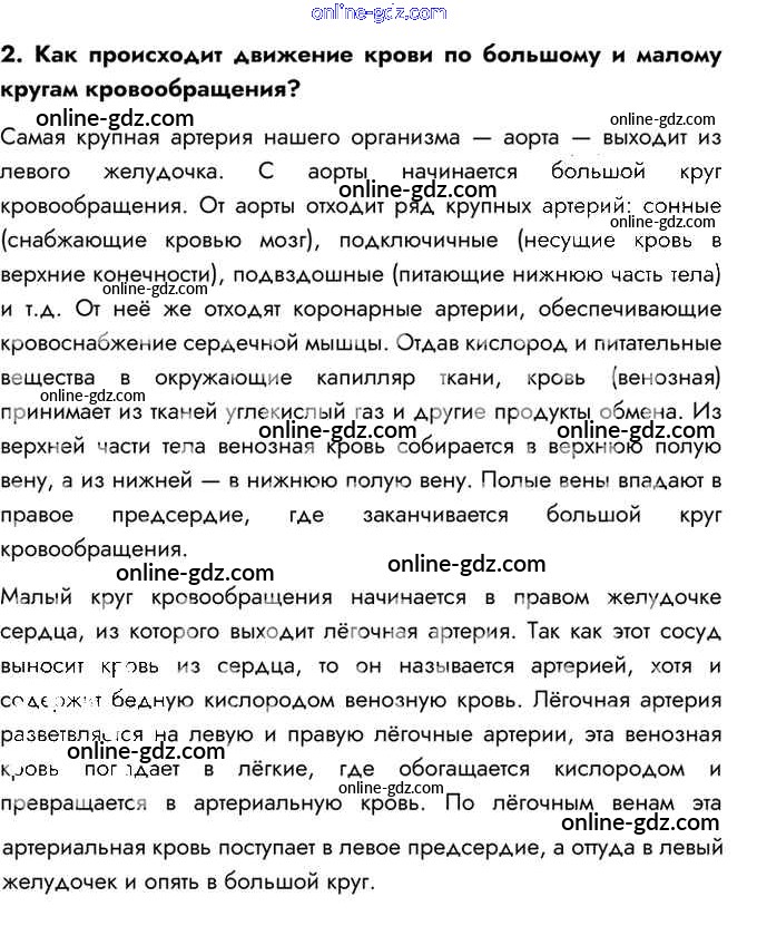 Готовые домашние задания по Биологии за 8 класс Учебник Пасечник, Каменский Линия жизни 2016 - Вопросы §18. Сосудистая система. Лимфообращение 2