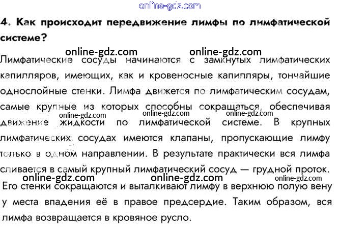 Готовые домашние задания по Биологии за 8 класс Учебник Пасечник, Каменский Линия жизни 2016 - Вопросы §18. Сосудистая система. Лимфообращение 4