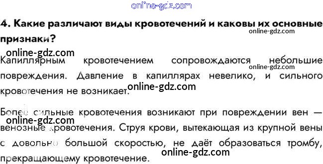 Готовые домашние задания по Биологии за 8 класс Учебник Пасечник, Каменский Линия жизни 2016 - Вопросы §19. Сердечно-сосудистые заболевания. Первая помощь при кровотечении 4