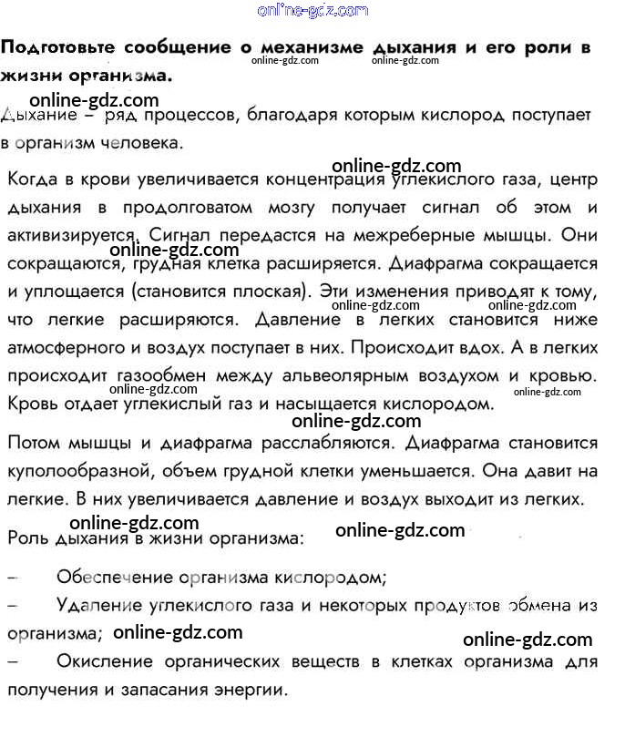 Готовые домашние задания по Биологии за 8 класс Учебник Пасечник, Каменский Линия жизни 2016 - Задания §20. Дыхание и его значение. Органы дыхания 1