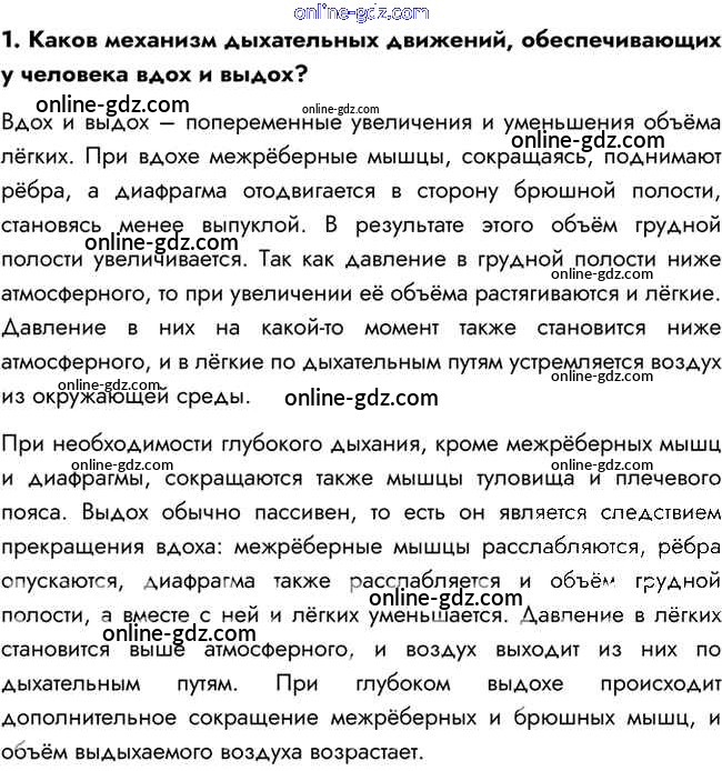 Готовые домашние задания по Биологии за 8 класс Учебник Пасечник, Каменский Линия жизни 2016 - Вопросы §21. Механизм дыхания. Жизненная ёмкость лёгких 1