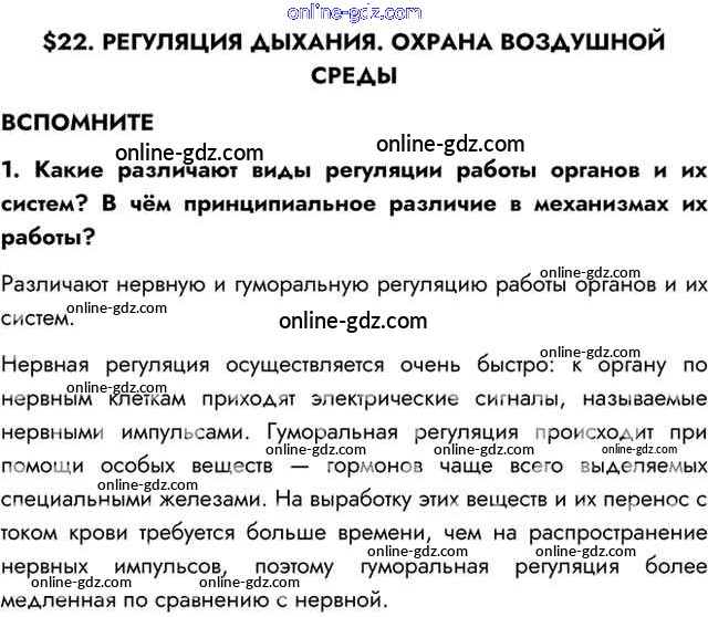 Готовые домашние задания по Биологии за 8 класс Учебник Пасечник, Каменский Линия жизни 2016 - Вспомните §22. Регуляция дыхания. Охрана воздушной среды 1