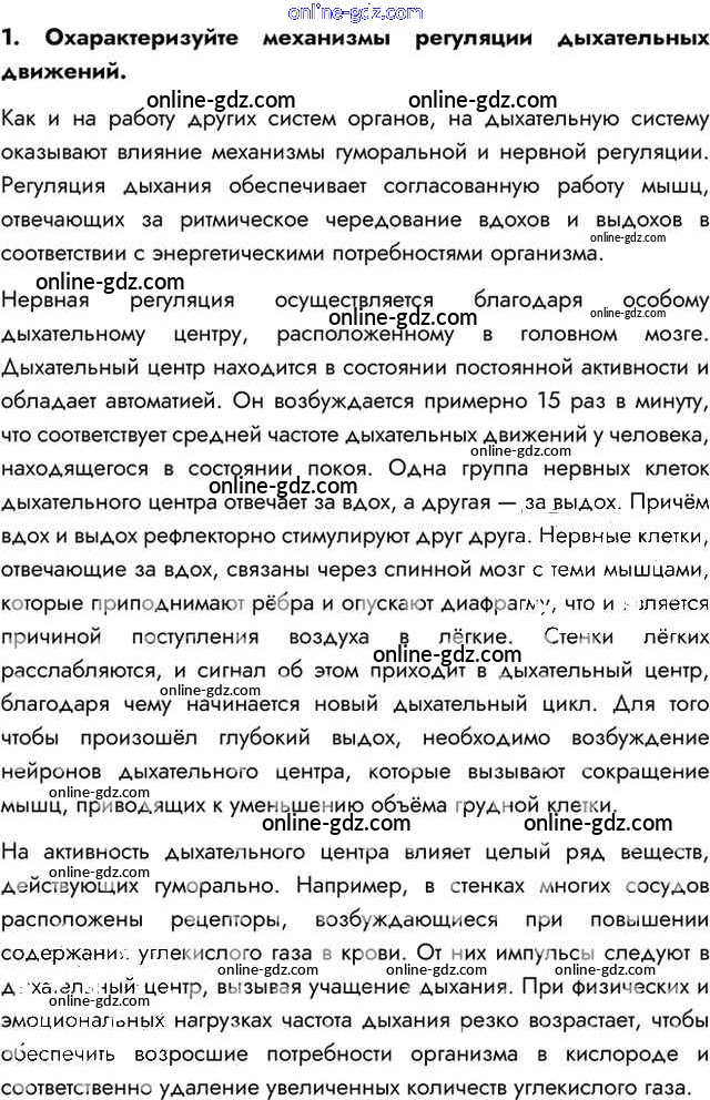 Готовые домашние задания по Биологии за 8 класс Учебник Пасечник, Каменский Линия жизни 2016 - Вопросы §22. Регуляция дыхания. Охрана воздушной среды 1