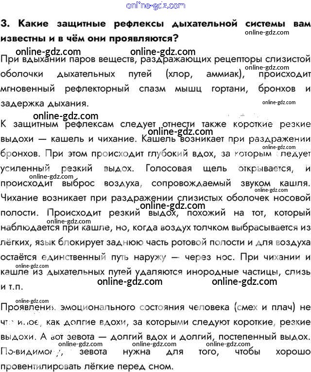 Готовые домашние задания по Биологии за 8 класс Учебник Пасечник, Каменский Линия жизни 2016 - Вопросы §22. Регуляция дыхания. Охрана воздушной среды 3