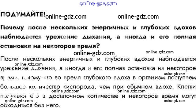 Готовые домашние задания по Биологии за 8 класс Учебник Пасечник, Каменский Линия жизни 2016 - Подумайте §22. Регуляция дыхания. Охрана воздушной среды 1