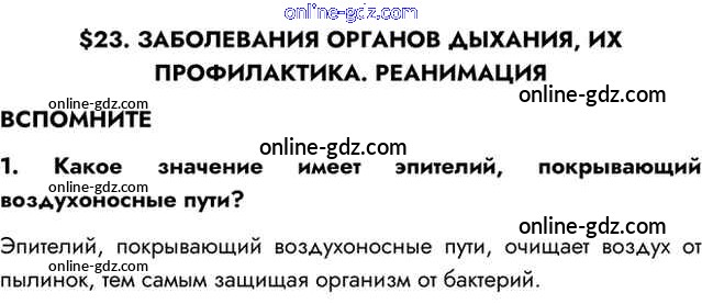Готовые домашние задания по Биологии за 8 класс Учебник Пасечник, Каменский Линия жизни 2016 - Вспомните §23. Заболевания органов дыхания, их профилактика. Реанимация 1