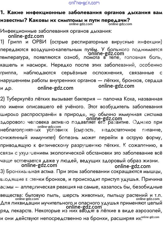 Готовые домашние задания по Биологии за 8 класс Учебник Пасечник, Каменский Линия жизни 2016 - Вопросы §23. Заболевания органов дыхания, их профилактика. Реанимация 1