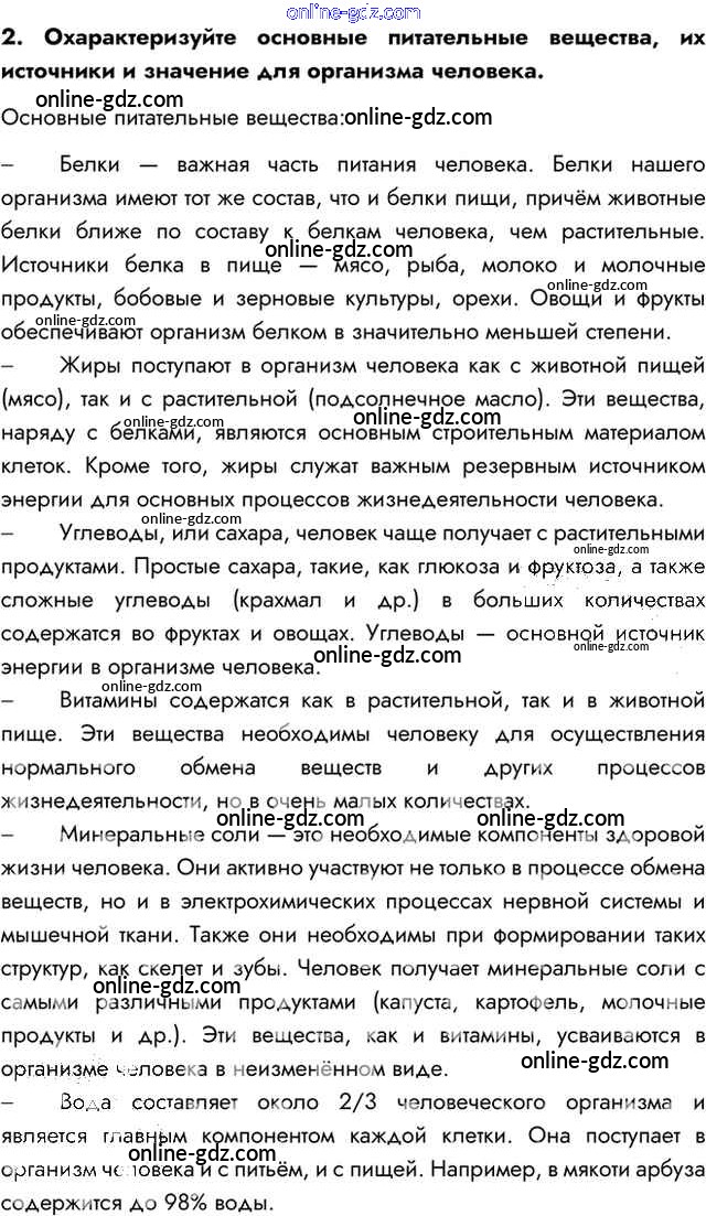 Готовые домашние задания по Биологии за 8 класс Учебник Пасечник, Каменский Линия жизни 2016 - Вопросы §24. Питание и его значение. Органы пищеварения и их функции 2