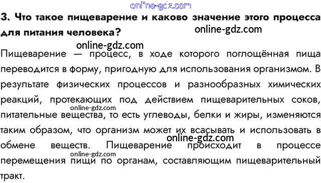 Готовые домашние задания по Биологии за 8 класс Учебник Пасечник, Каменский Линия жизни 2016 - Вопросы §24. Питание и его значение. Органы пищеварения и их функции 3