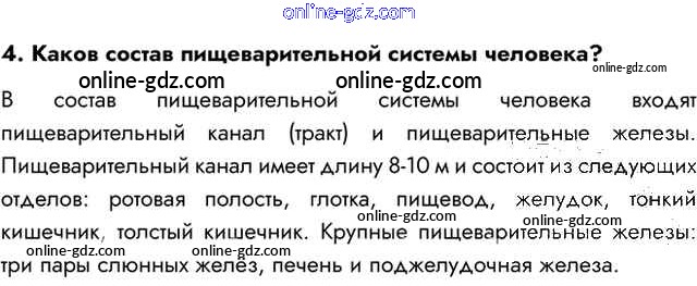 Готовые домашние задания по Биологии за 8 класс Учебник Пасечник, Каменский Линия жизни 2016 - Вопросы §24. Питание и его значение. Органы пищеварения и их функции 4